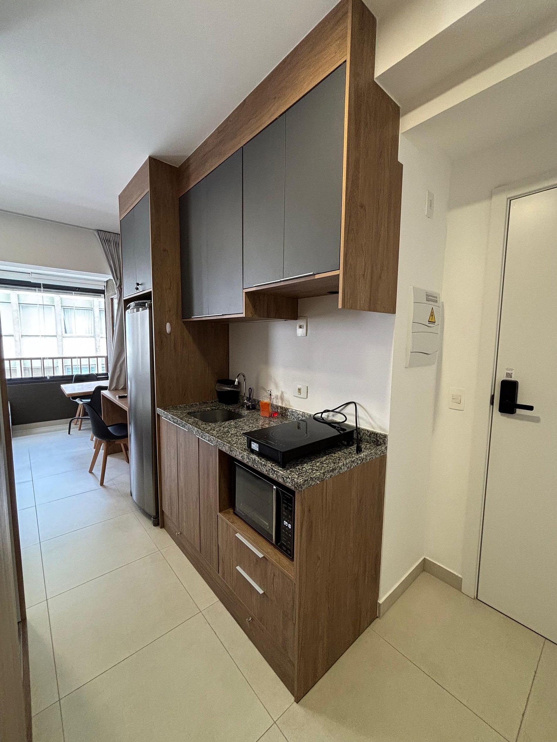 O acesso é simplificado e automatizado. Solicitamos nome completo e número do documento para cadastro antecipado na portaria. O acesso ao Studio é por fechadura eletrônica. Todos os dados serão passados próximos ao dia do check in.