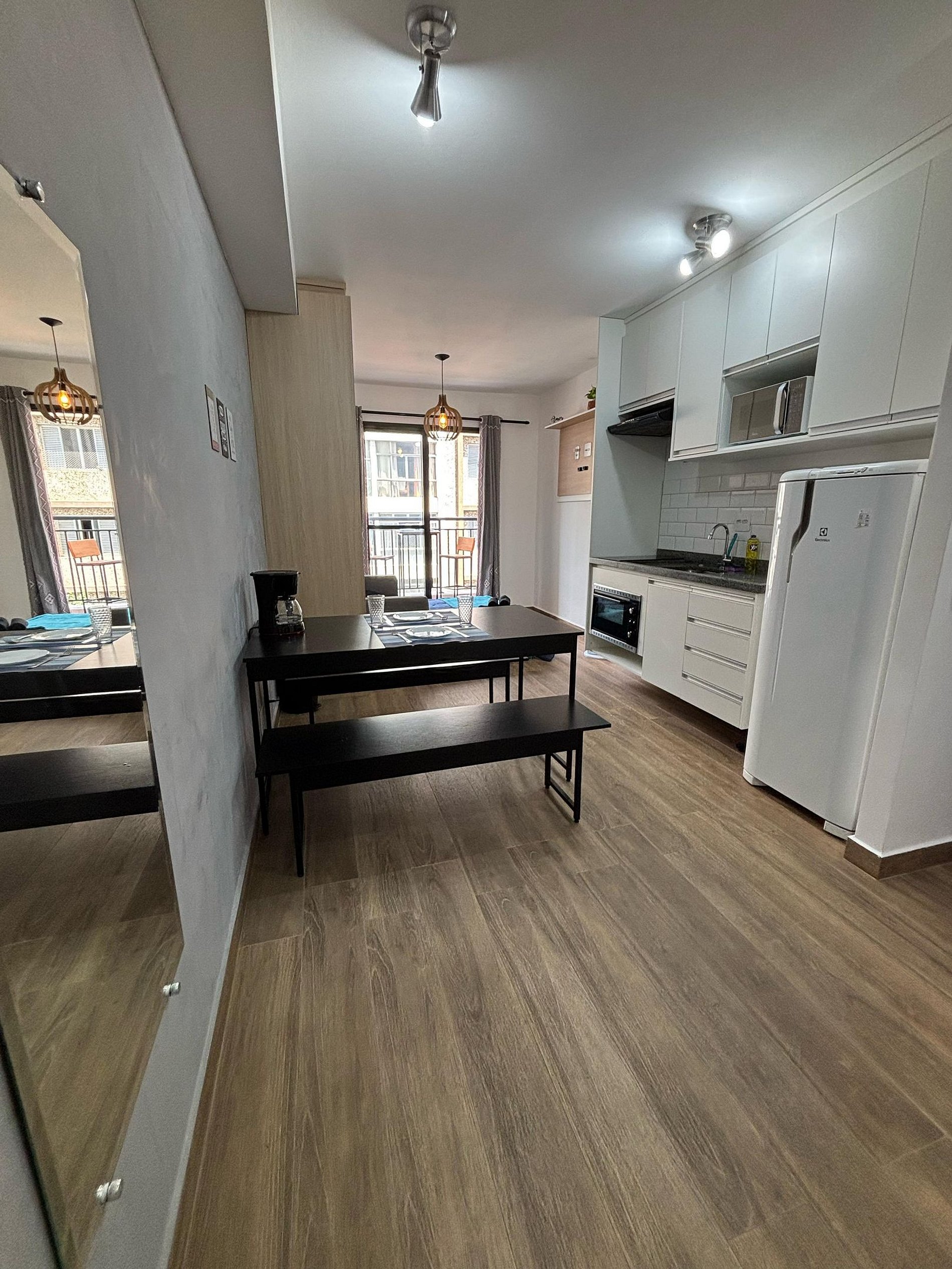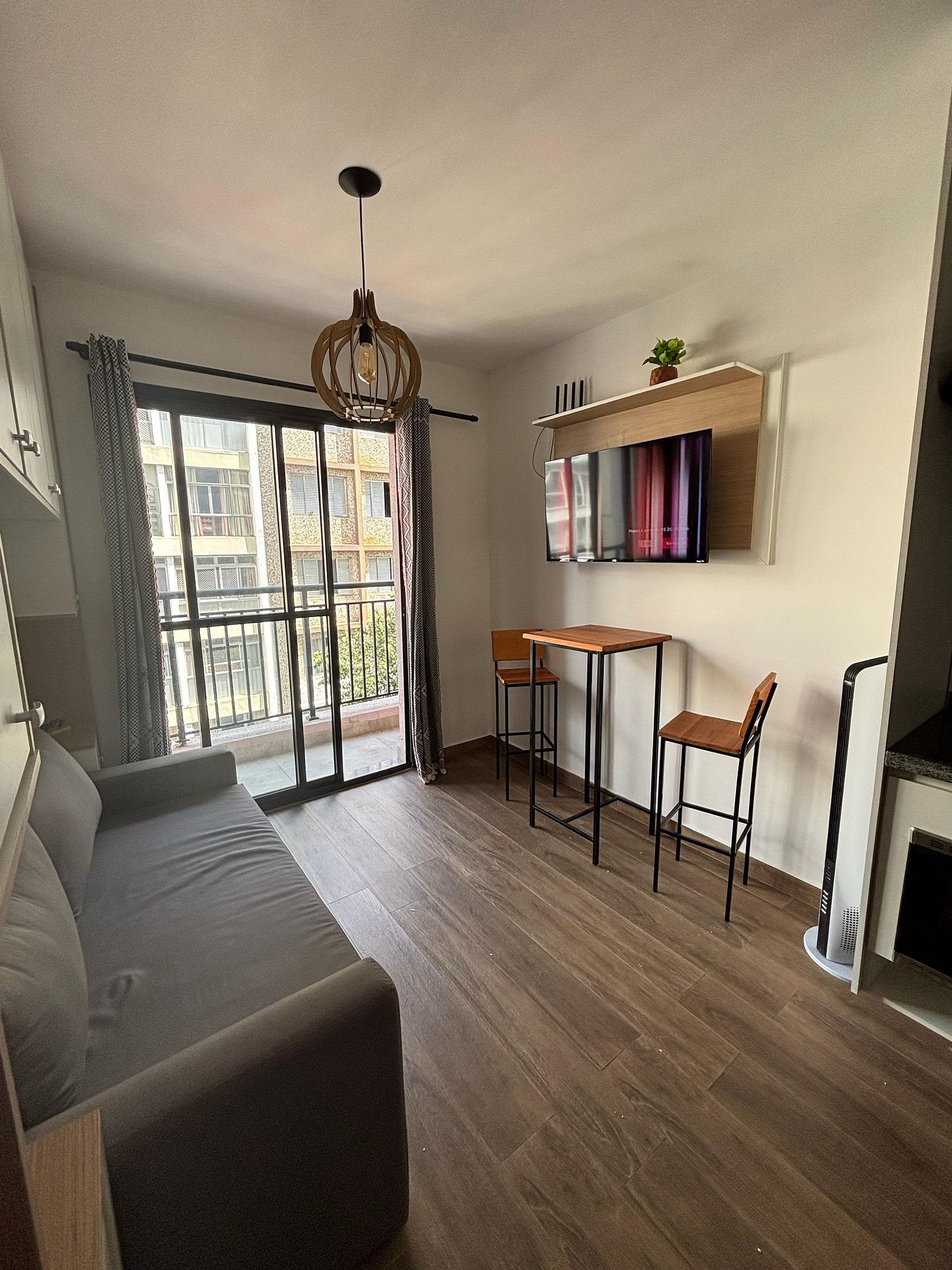 Studio espaçoso com varanda, a poucos minutos das estações República, Santa Cecília e Higienópolis-Mackenzie. Conta com cozinha completa e uma ótima mesa de refeições, ideal para o dia a dia. O condomínio oferece espaço de co-working e um café no térreo, trazendo praticidade e conforto. Perfeito para quem busca um lar moderno, bem localizado e funcional em São Paulo.