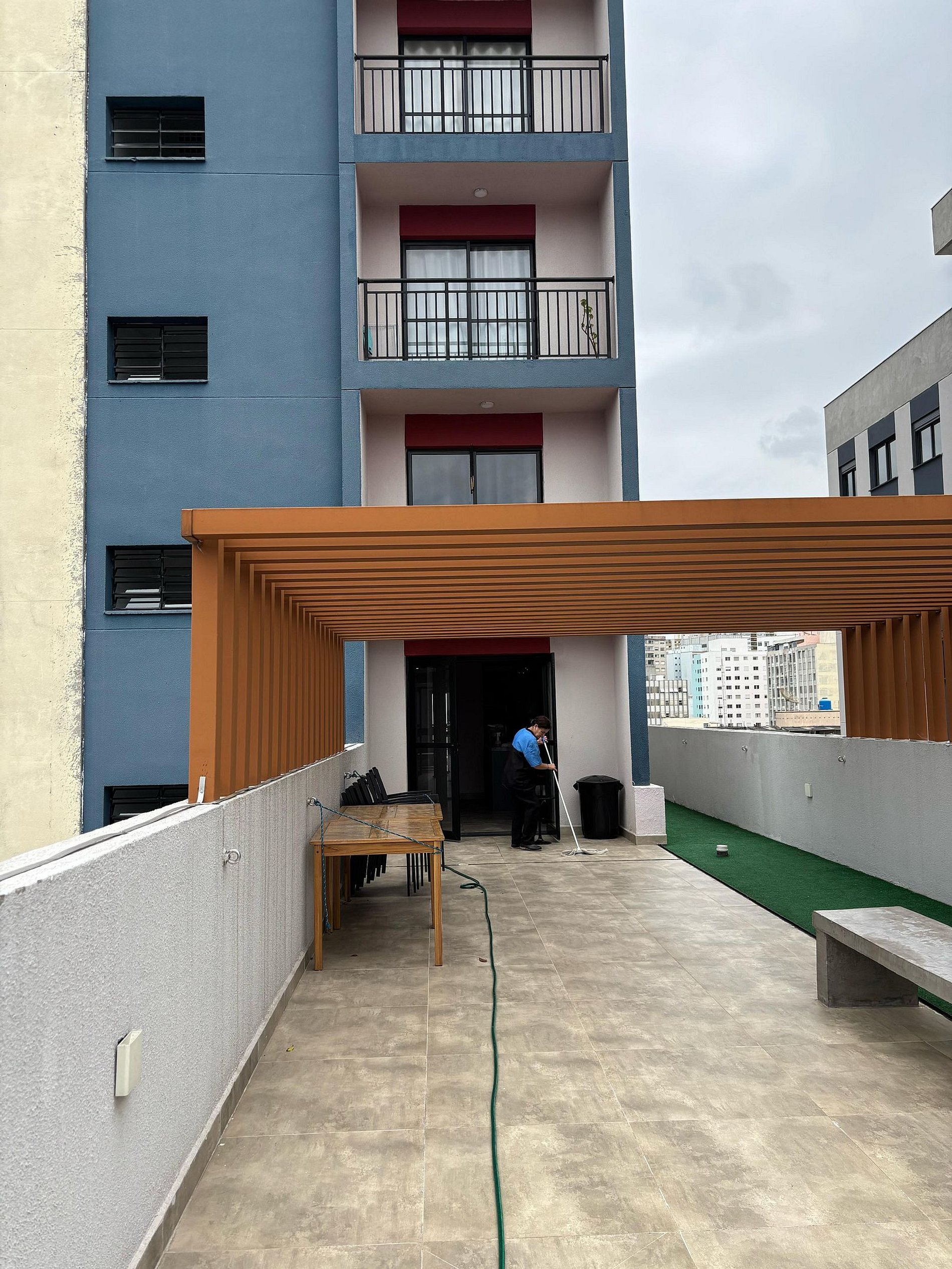 Além do conforto do studio, o condomínio oferece uma estrutura completa, incluindo um espaço de co-working para quem precisa de um ambiente tranquilo e produtivo. No térreo, um charmoso café torna as suas manhãs mais práticas e saborosas.
