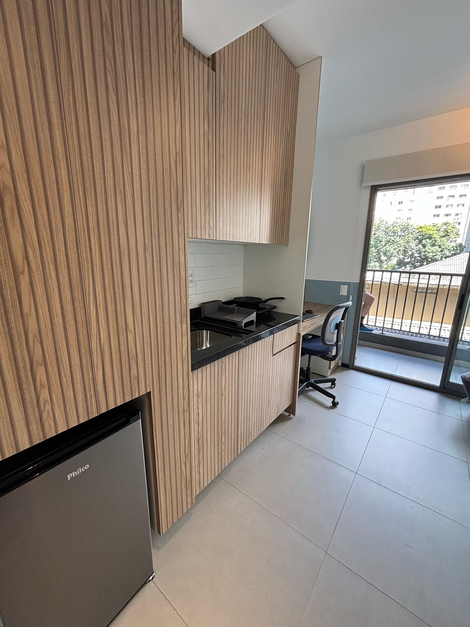 Studio moderno e funcional, ideal para quem busca conforto e praticidade! O espaço conta com uma cozinha completa, equipada com micro-ondas, fogão elétrico, frigobar, panelas e utensílios básicos, perfeita para preparar suas refeições com facilidade.