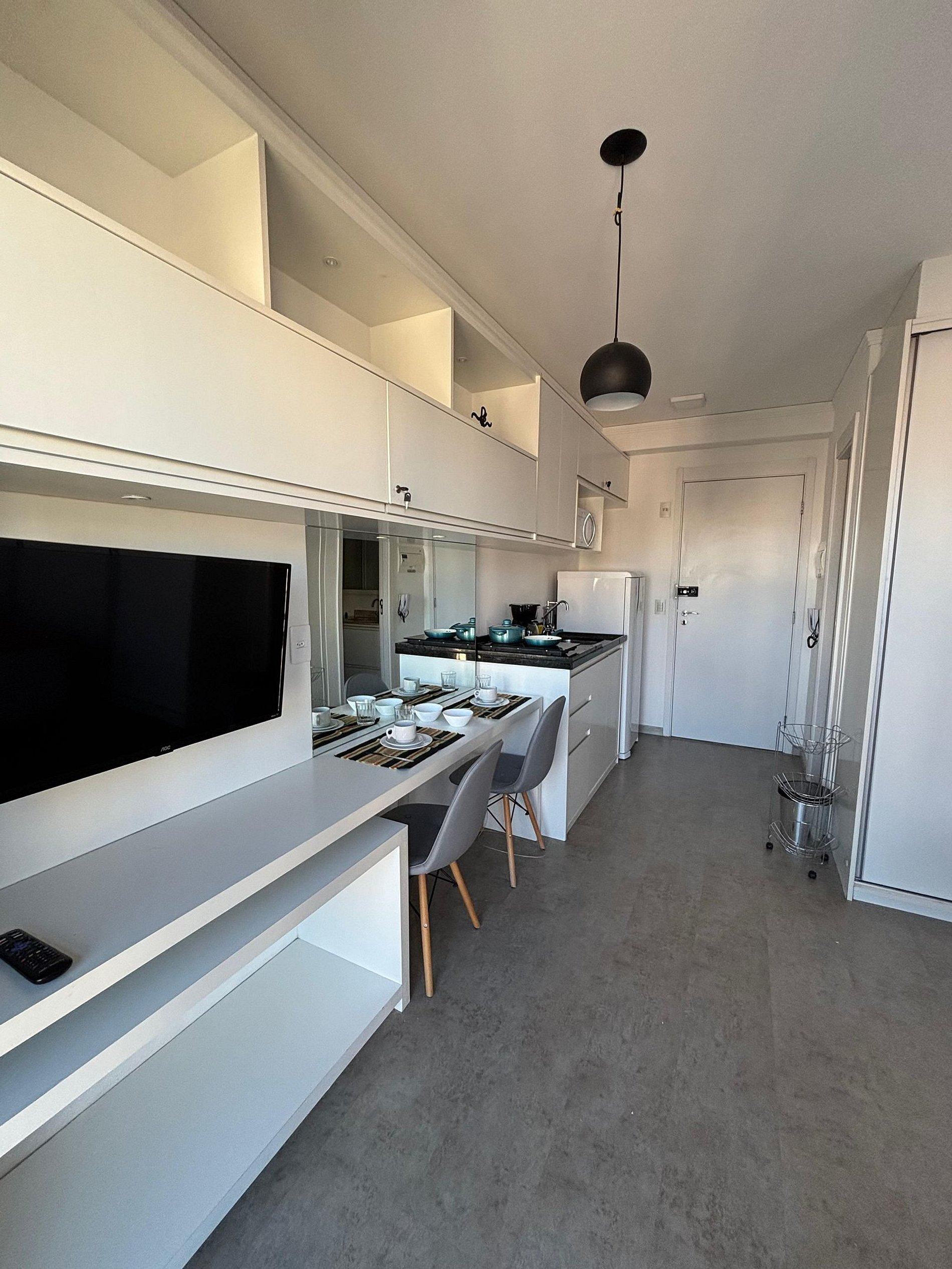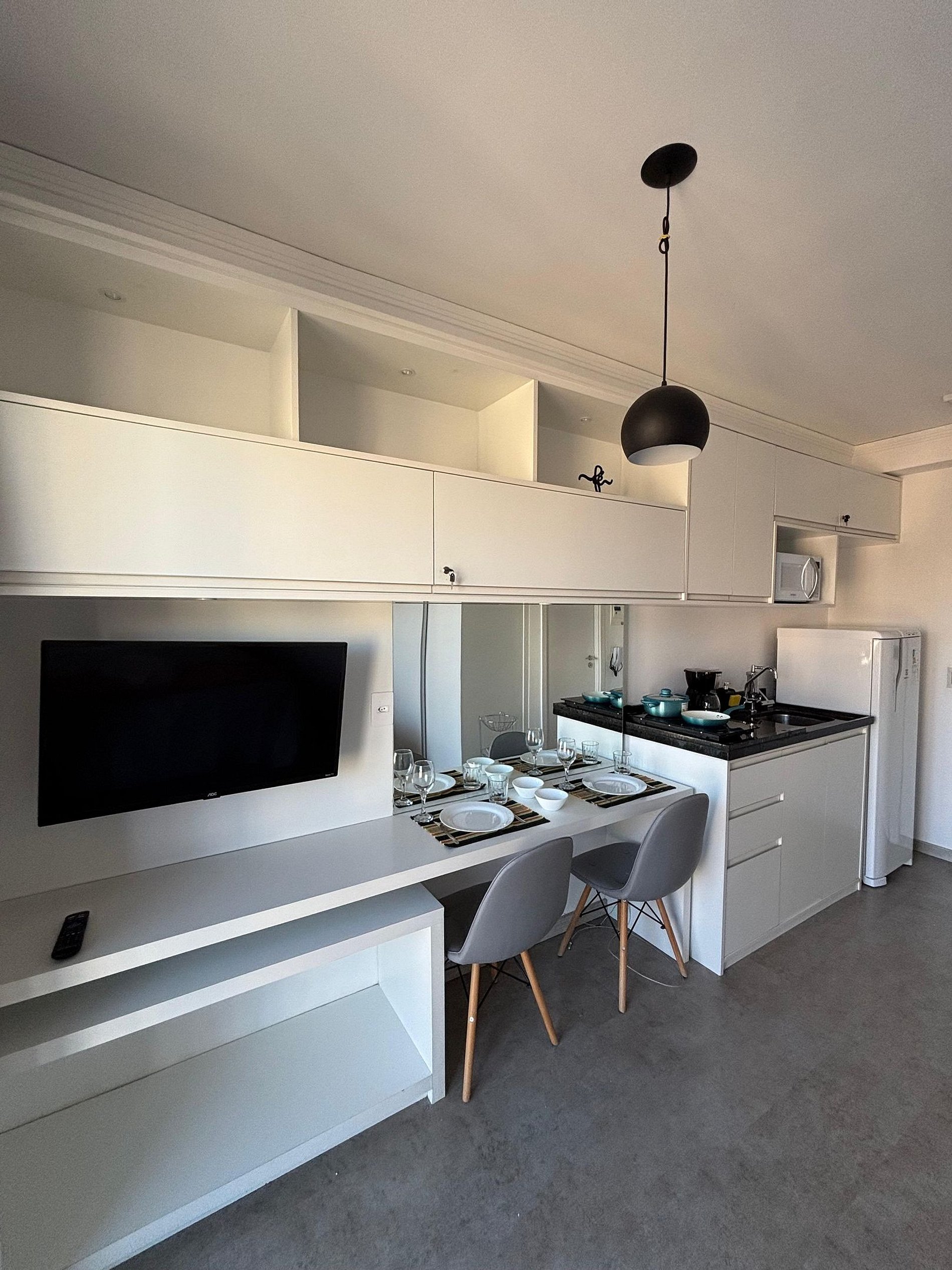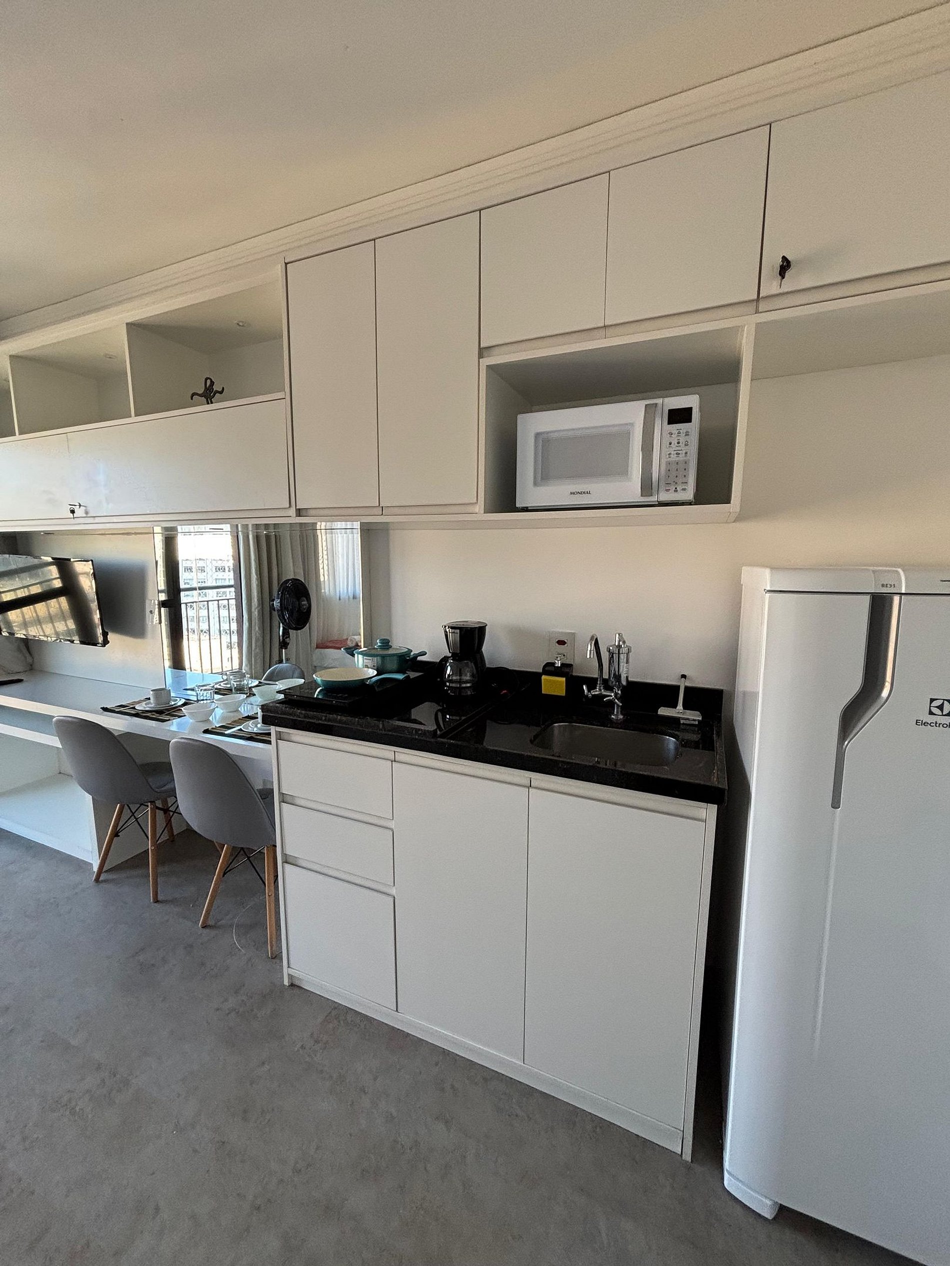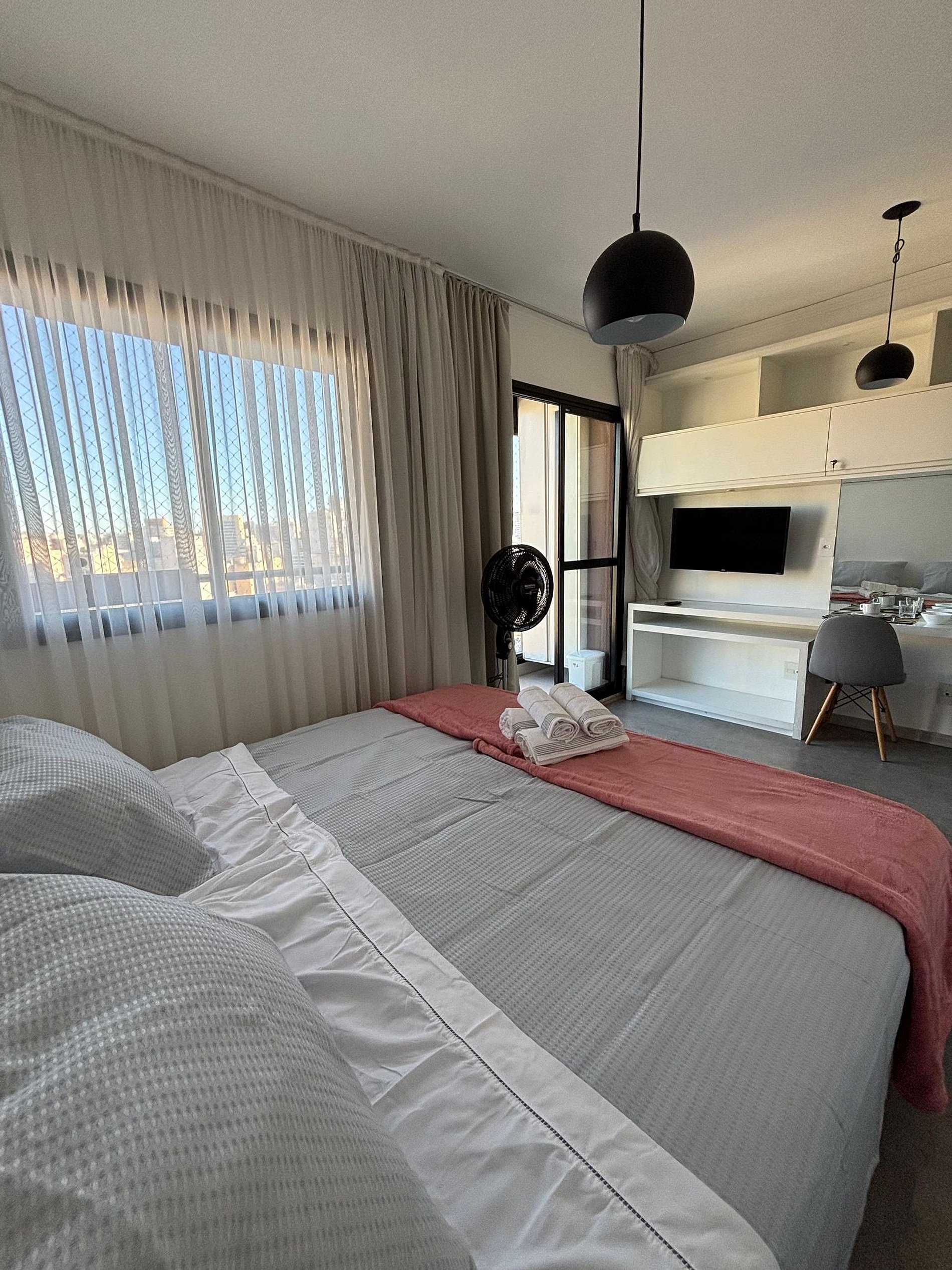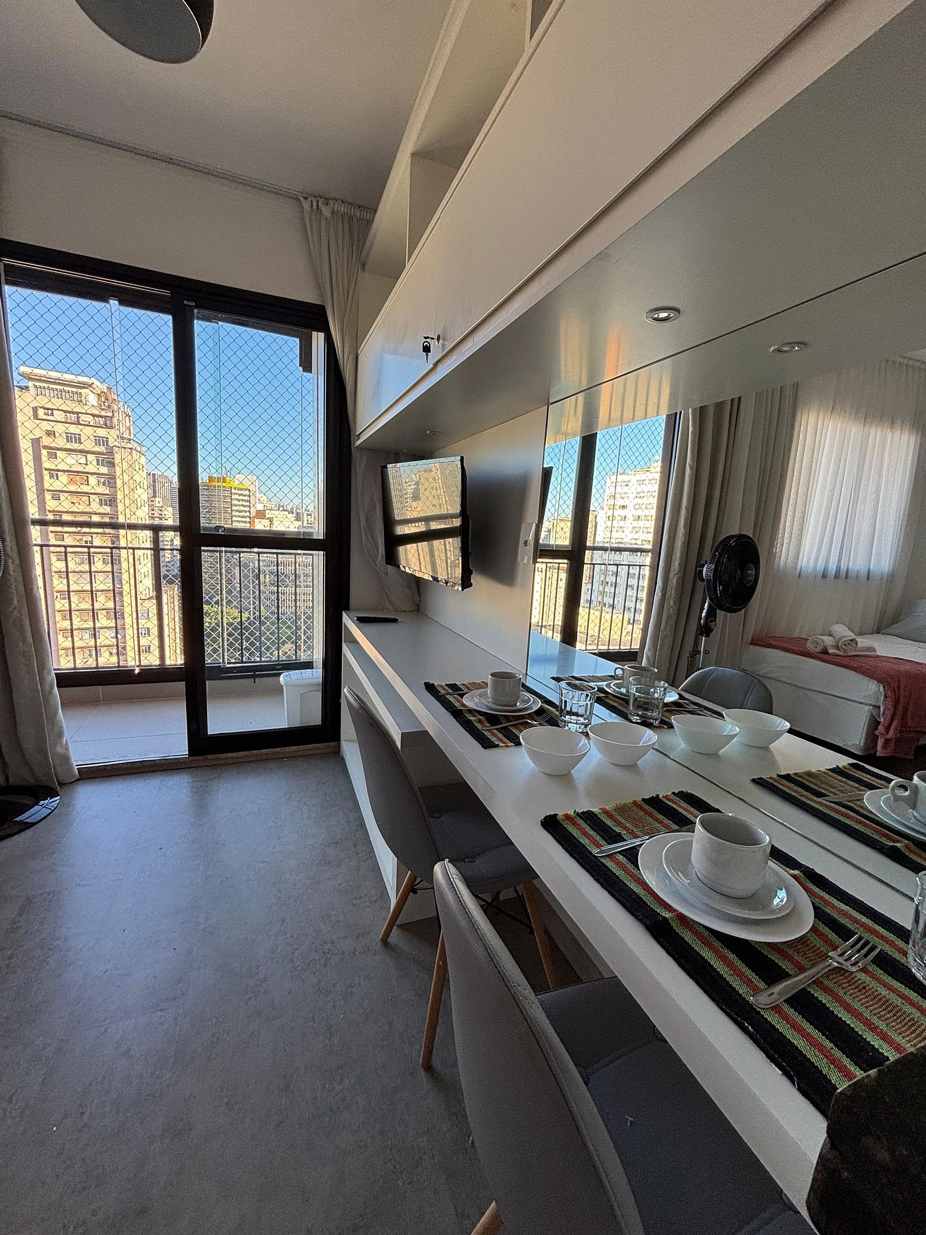 O estúdio é funcional, confortável e bem equipado. A cozinha compacta oferece panelas, louças, utensílios e taças. Há espaço para refeições e possibilidade de acomodar um berço (consulte disponibilidade e custos). O ambiente é iluminado, silencioso e ventilado, com ar condicionado e ventilador de torre potente. A entrada é prática com fechadura eletrônica e self check-in, garantindo autonomia e segurança. Ideal para quem busca comodidade em uma estadia no centro de SP